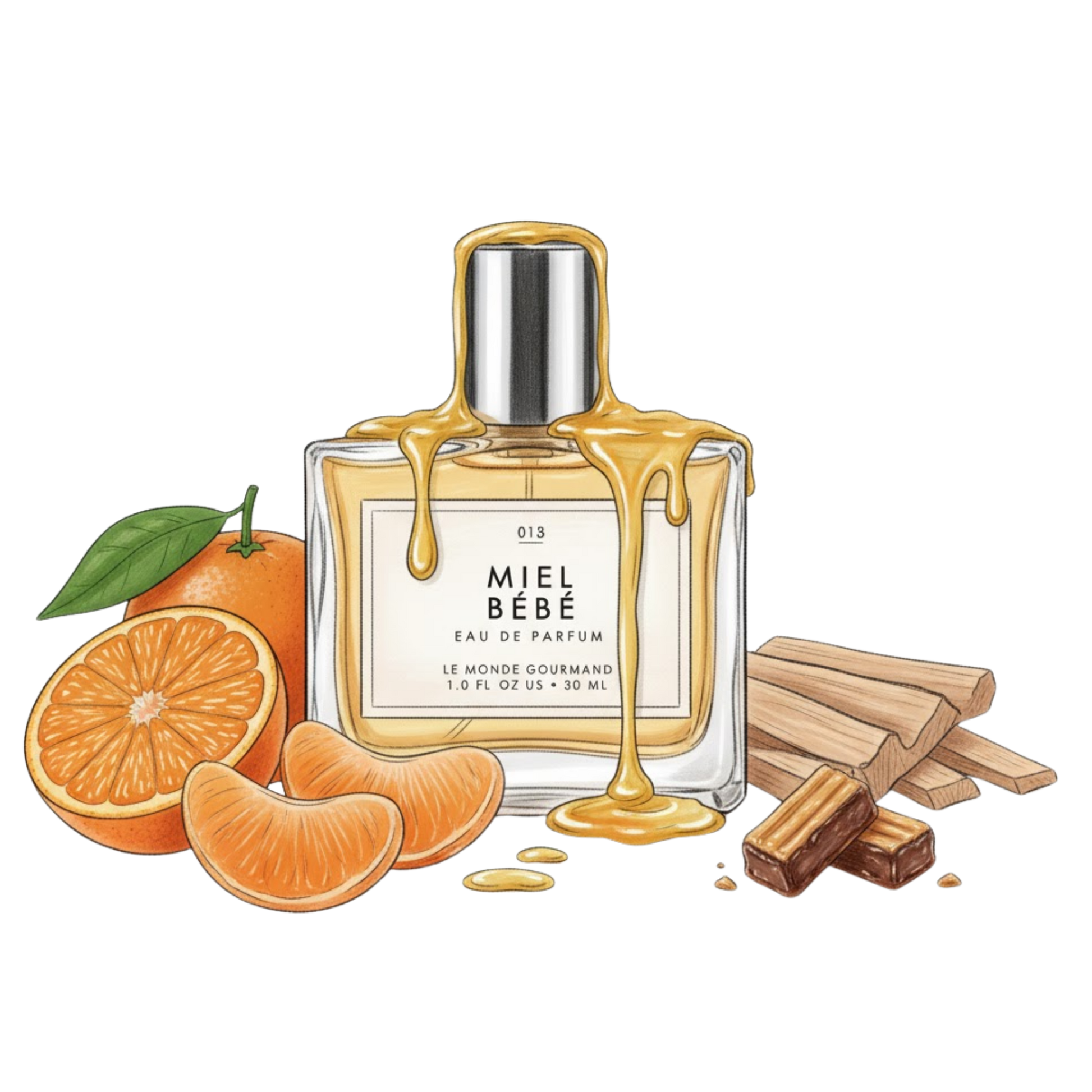 Miel Bébé wraps bright citrus and golden honey in warm wood and creamy praline. It’s sophisticated dessert‑vibes without being sugary. The sandalwood adds depth and the praline finish gives you a lasting richness.