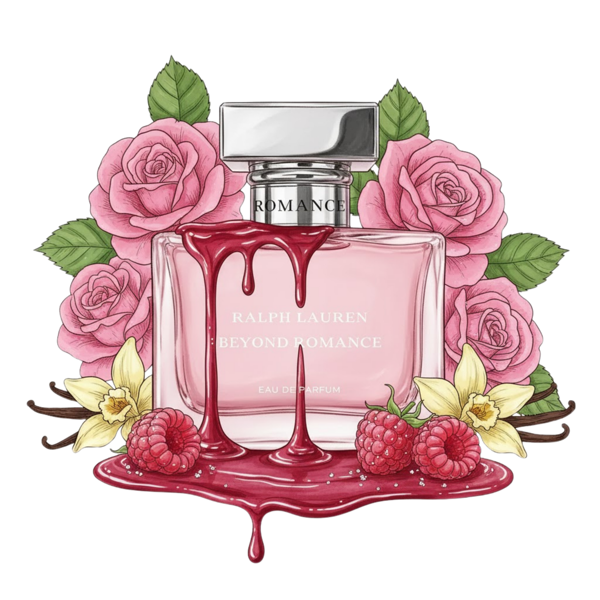 Ralph Lauren Beyond Romance is a modern floral woody musk fragrance for women that opens with a sweet, juicy burst of raspberry coulis, mandarin orange and bergamot. The heart blooms with rose de Mai, jasmine and lily of the valley. The base wraps you in black vanilla accord, cashmeran and white musks.
