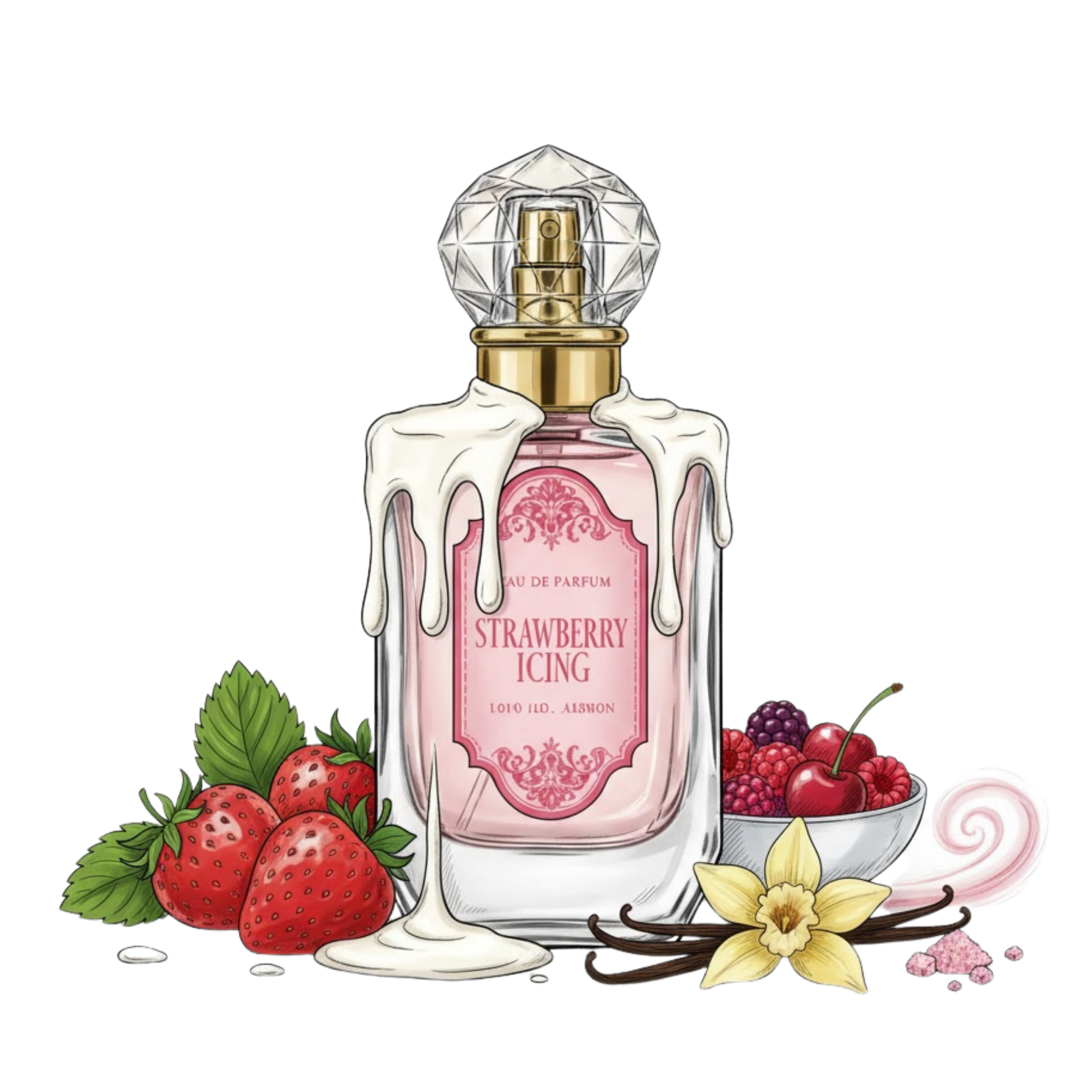 Strawberry Icing is a playful womens fruity gourmand that wraps you in the aroma of ripe strawberries dipped in sugar. It opens with juicy strawberry top notes and a hint of sugary frosting that feels instantly fun and upbeat. The heart brings soft sugar‑sweet pea and airy vanilla creaminess for a light dessert vibe. The base settles into subtle woods that keep the sweetness grounded and wearable. Perfect for spring and summer days when you want a scent that’s cheerful and delightfully edible.