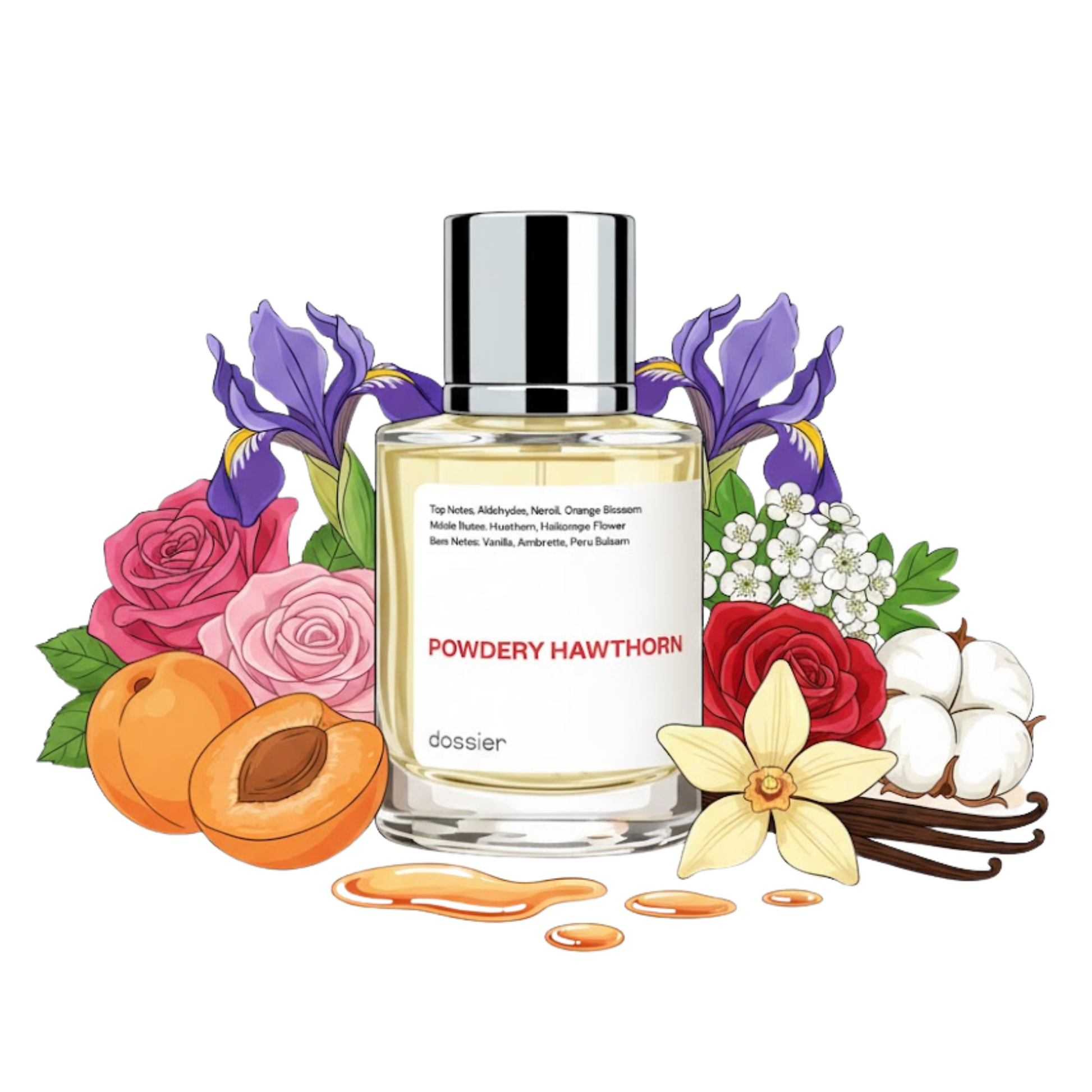 Dossier Powdery Hawthorn is a soft and nostalgic floral fragrance inspired by the iconic Tom Ford Metallique. It opens with a crisp and shimmering burst of aldehydes and pink pepper, creating a cool metallic edge that quickly melts into a lush heart of white flowers and powdery hawthorn. This scent is a beautiful contrast of modern brightness and vintage creaminess, perfect for someone who loves a clean yet addictive aroma.