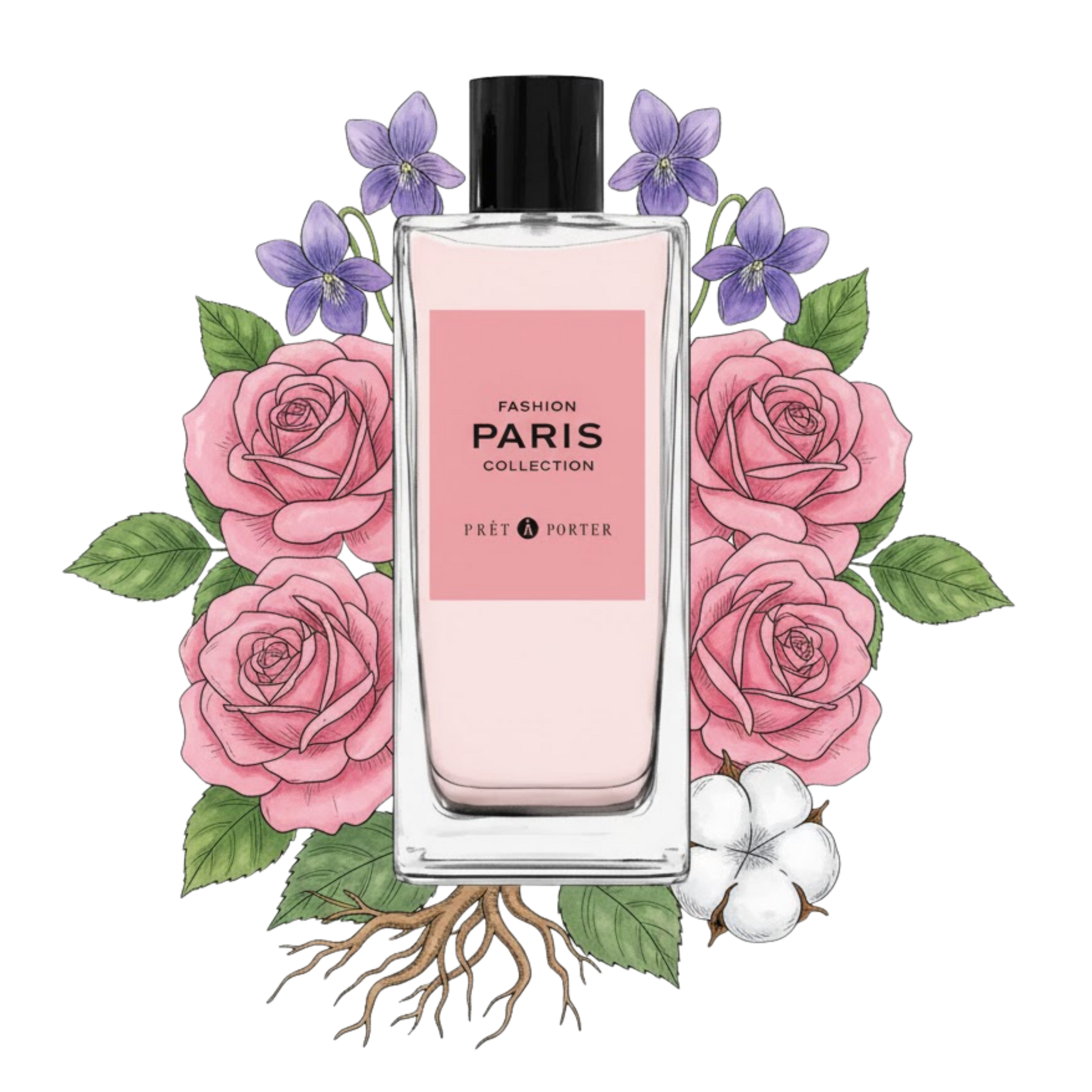 The fragrance opens with an effervescent burst of bergamot and aldehydes, giving it a luminous, sparkling quality. This freshness transitions into a beautiful, classic floral heart dominated by a rich, yet airy rose and subtle hints of violet. The dry-down is a soft, creamy base of sandalwood, clean musk, and warm amber, leaving a refined and delicately sweet floral trail.